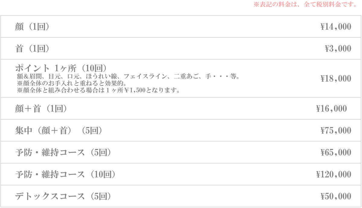 またそれ以外にも妊娠されてる方向けのマタニティーコース、他サロンでエステは終わってるけど産毛処理ができてないという方など、多種多様なご要望にお応えさせて頂きます。