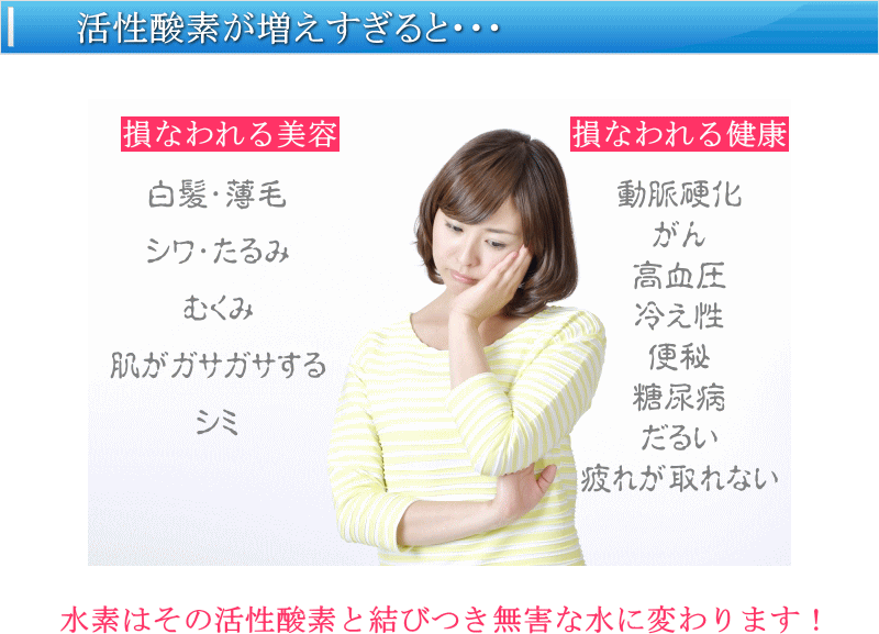 ・美容や健康を損なう様々な要因から生じる悪玉活性酸素を撃退します! 水素水・水素風呂・水素吸入取り入れ方は色々ありますが、効果の高さの順位は・・・ |